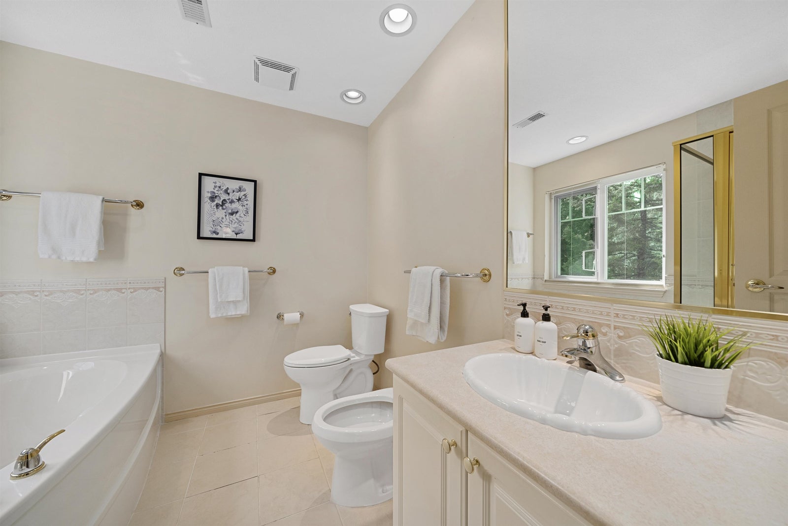 Come see this unique floor plan, designed by the original owners, of this beautifully maintained 3bd/3ba, 2,188sf duplex-style townhome facing Westwood Plateau Golf Course. Only unit in complex originally built with forced air on both levels providing true central A/C throughout, an actual laundry room with sink & spacious linen closet, generously-sized bedrooms with a large walk-in closet in the main bedroom. Furnace & water tank in 2-car garage. Open concept main floor, high ceilings, pristine hardwood flooring, kitchen, formal dining, duo fireplace warms the living/family room. Quiet location, close to schools, parks, trails, Coquitlam Centre & Skytrain. Open house Saturday September 27 1-3PM