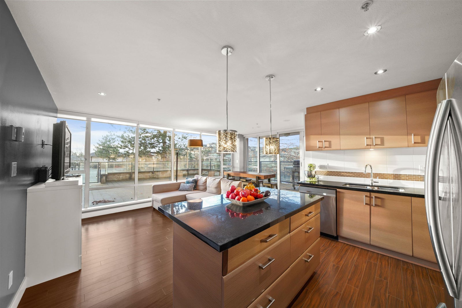 An entertainer's delight! Welcome to this exceptional 2 bed, 2 bath + sunny Den & your very own private patio spanning over 700 SF! An incredibly rare offering- enjoy urban living w/ incredible walkability + expansive outdoor space. Host family & friends & watch the beautiful sunset from your living room, or stretch out & do your morning yoga on your patio. You no longer have to choose between a central location or outdoor space- you deserve both! Inside, abundant natural light streams through the floor to ceiling windows, illuminating every corner of this home. With an efficient floorplan, no space is wasted! Walk to the Rec Center, library, daycares, coffee, doctors, dentists, chiro, & more. 1 locker & 1 parking Incl. **Sorry, no pets.