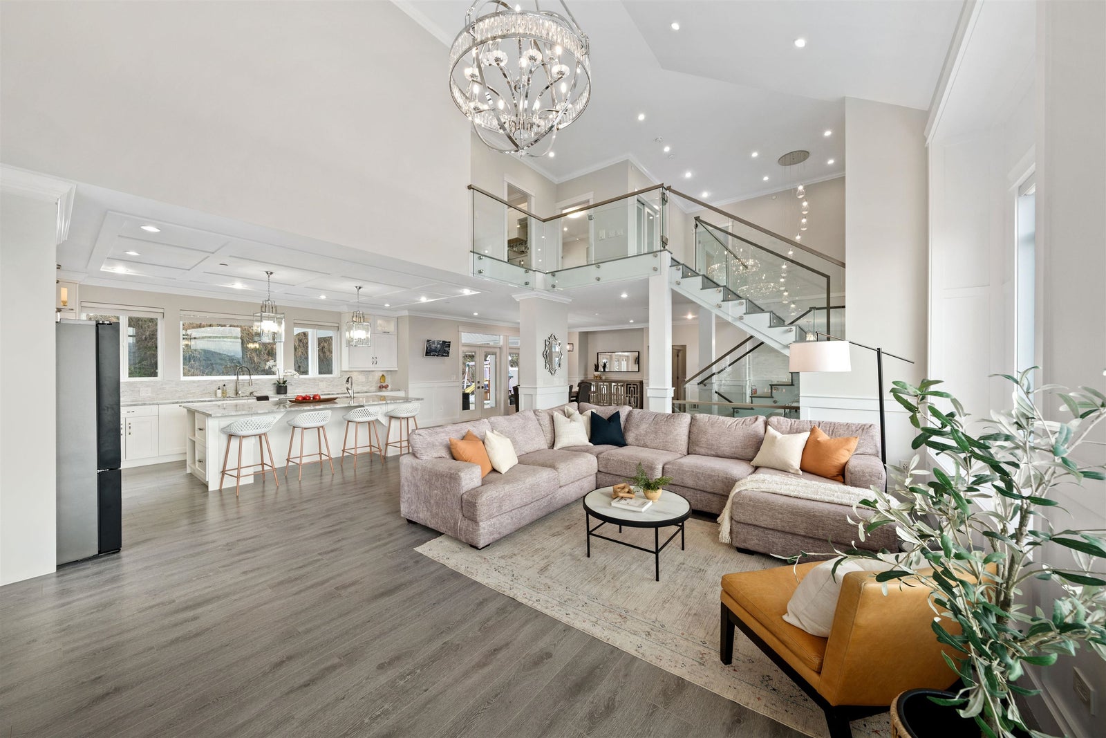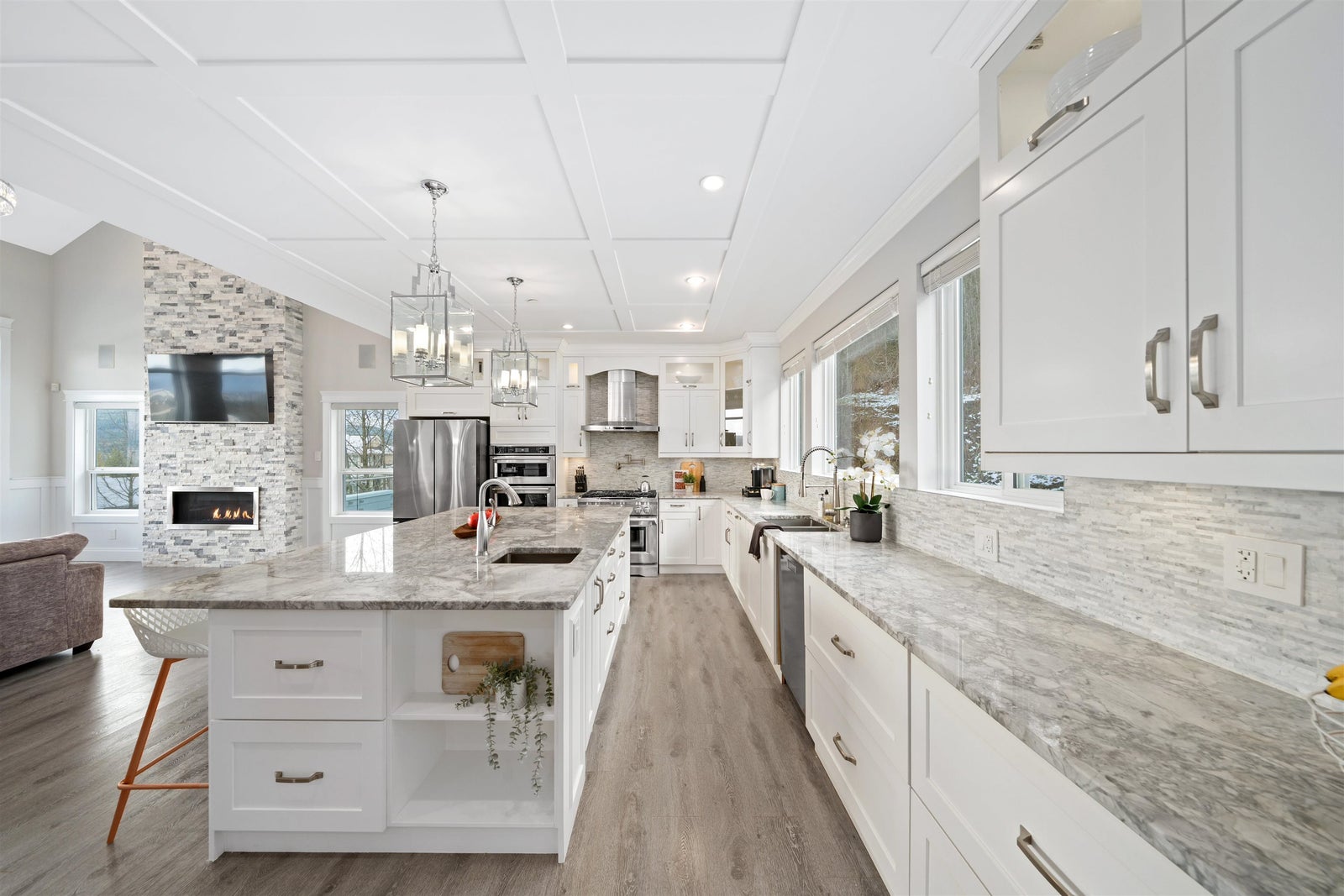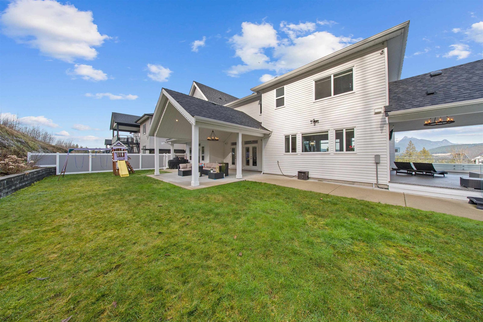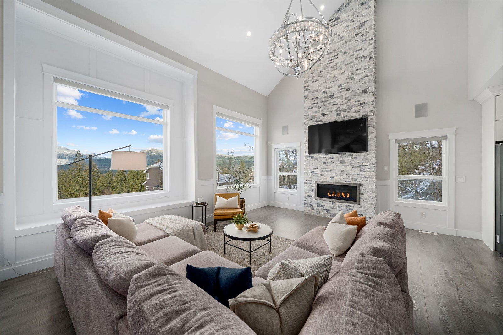 Luxury residence in Grant Hill Estates offers elevated lifestyle with sweeping 180° views of Mountains framed by spectacular sunsets.4,417 sq. ft. of living space on a 1.55 acre lot, this home delivers presence and privacy.Featuring 6 beds & 5 baths, including a spa primary retreat,central A/C, in-ground irrigation, oversized triple garage with room for your RV or boat. Inside a flowing open-concept layout elevated by vaulted ceilings, walls of windows & floor-to-ceiling gas fireplace that anchors the main living space along with a fully soundproofed private theatre.The outdoor setting is designed for upscale entertaining with hot tub, two vaulted patios, integrated TV and audio uninterrupted mountain vistas. Moments from scenic trails & parks. Legal 2 bed suite.