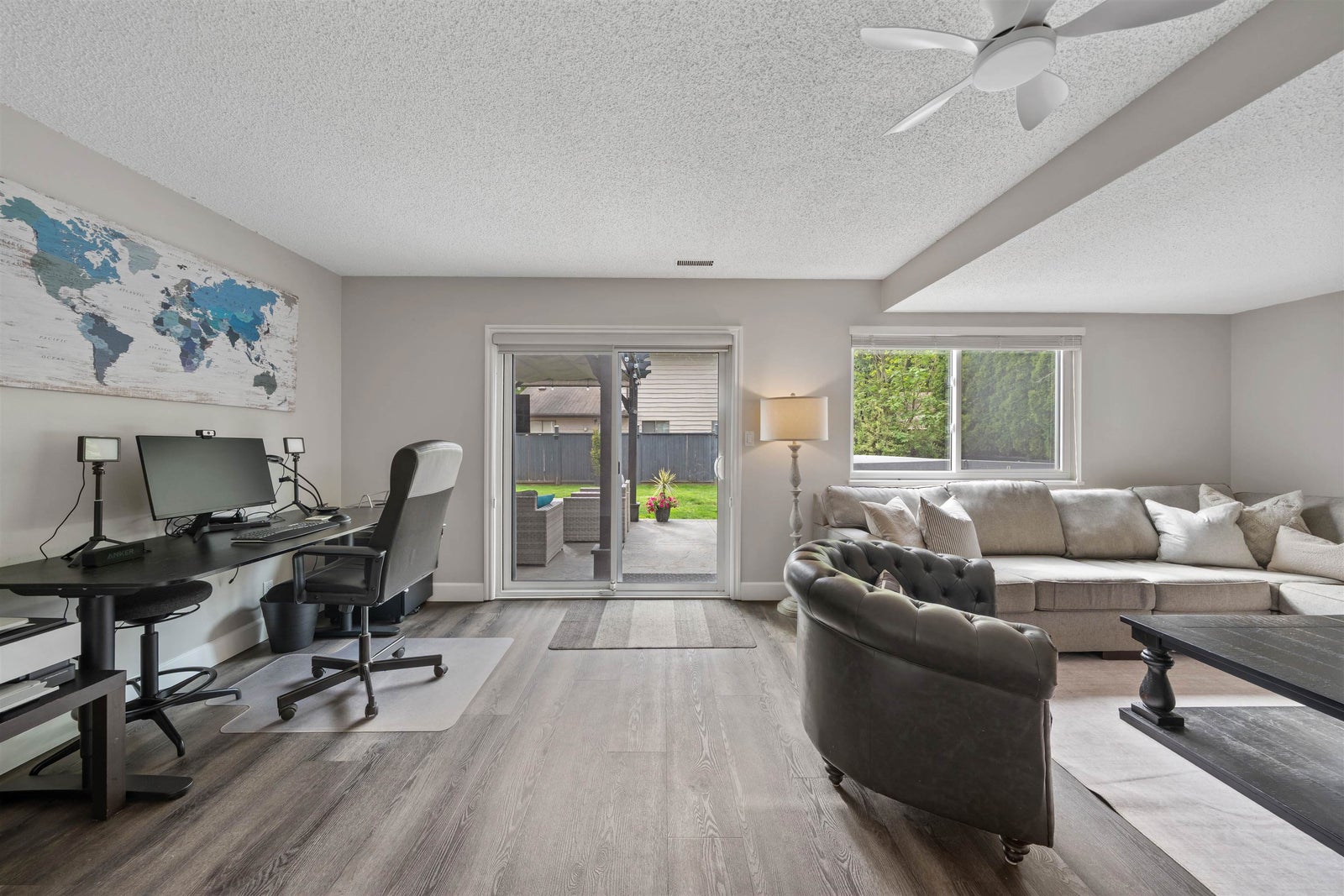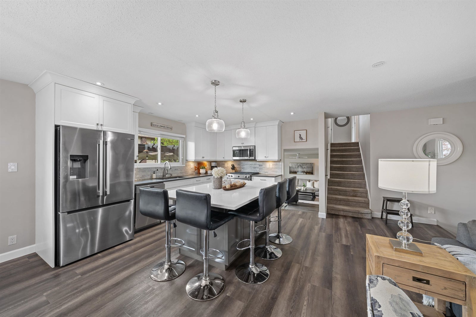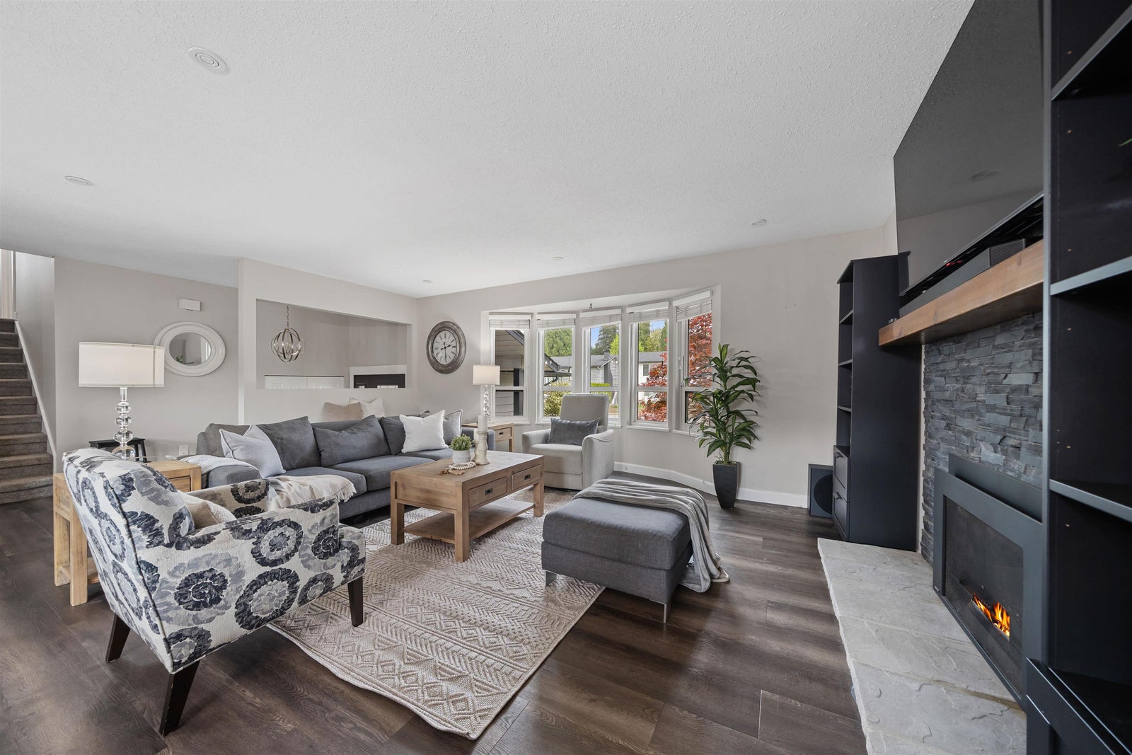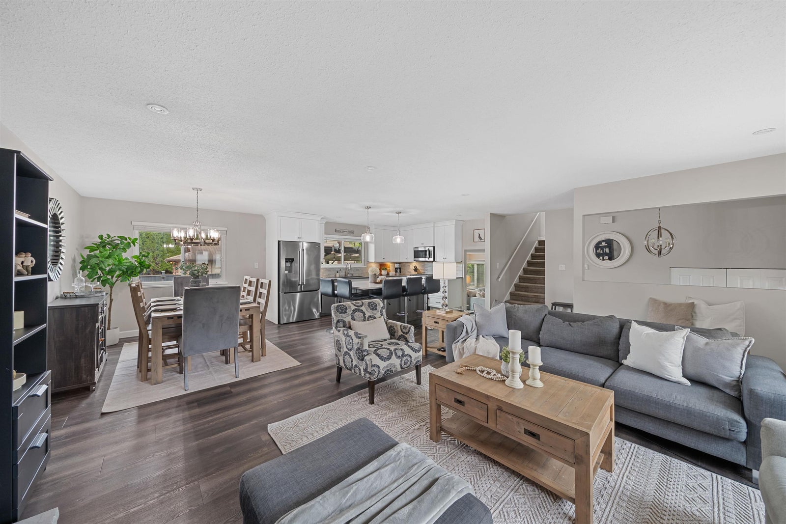 Welcome to an exceptional family residence in a highly sought-after, impeccably maintained neighbourhood, just a short walk to all levels of schooling. Meticulously cared for, this 2,476 sqft home reflects true pride of ownership throughout. Offering 5 bedrooms & 3 elegantly updated bathrooms, it features a bright, modern kitchen with a refined eating area, a spacious family room, and a grand living room designed for effortless entertaining. The lower level includes a private bedroom, recreation room, & dedicated gym. Enjoy year-round comfort with a new furnace, heat pump, updated windows, & two gas fireplaces. Set on a private, beautifully landscaped 7,260 sqft lot with a stamped concrete patio, pergola, hot tub, secure drive-through RV or boat parking, Open House Sat April 25 from 1-3pm